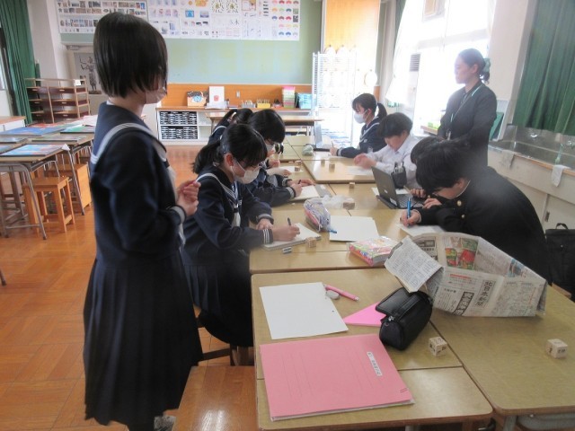 (写真下:美術部「サイコロアート」にチャレンジです)