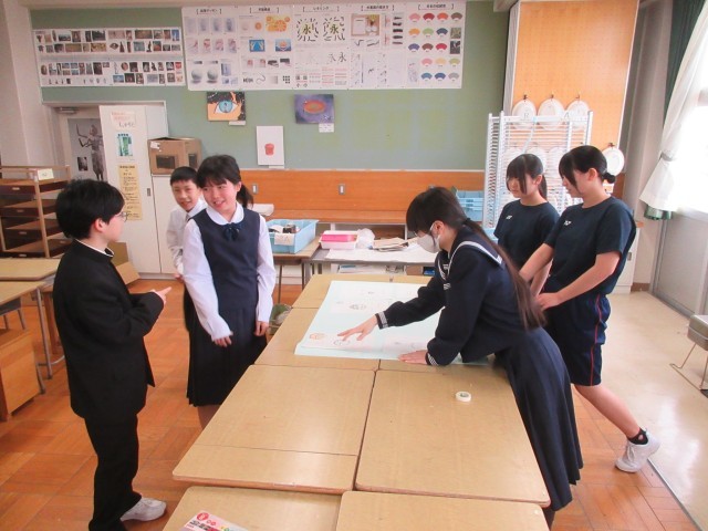 1年生の新メンバー4名と一緒に、今週末の学習参観に向けて作品掲示準備をしました!