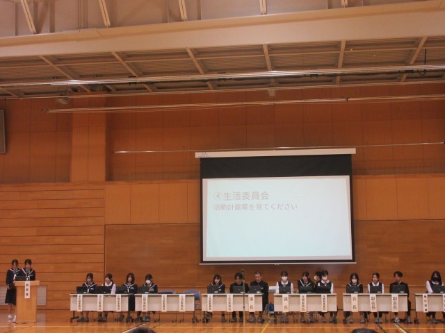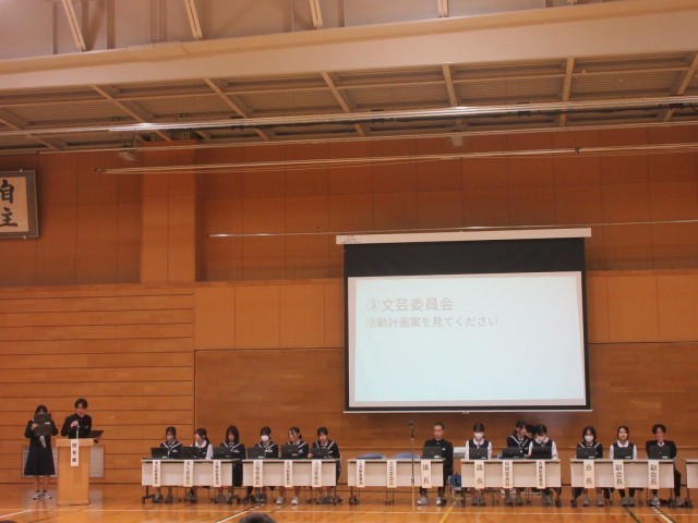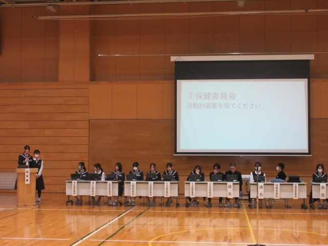 (写真上:各委員会から活動方針の説明です。保健委員会)