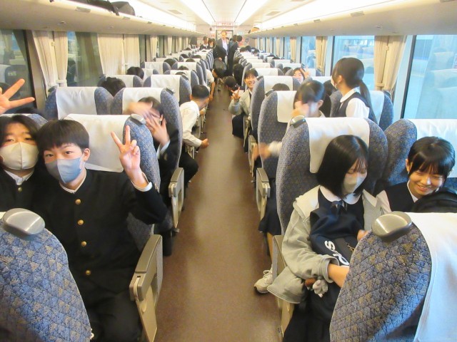 初めて新幹線に乗る生徒もおり、新幹線の速さに驚いていました。