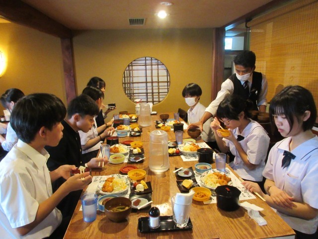 朝食と昼食を食べています。3日間、みんなと一緒においしいご飯を食べることができました。