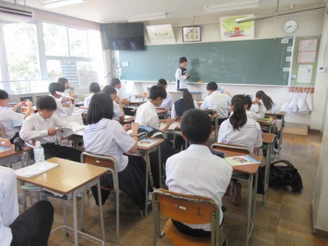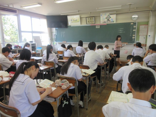 (写真下:2B 社会『地理の自主学習2・3』が配られています)