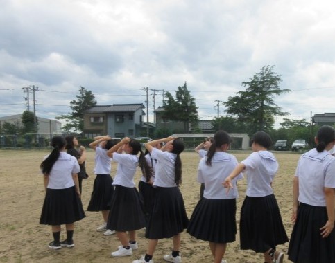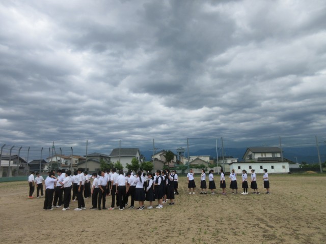 全校生徒がグラウンドで「水中」の文字を作り、ドローンで撮影していただきました。