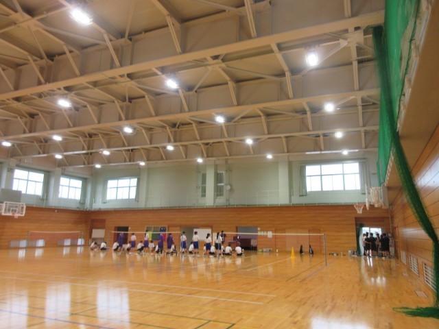 (写真上:3A 体育 バドミントンの前に打ち合わせ)