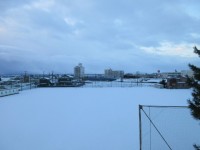 2/2(月) 2月を迎えました。寒波が一通り過ぎた後のグラウンドは真っ白です。「...