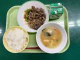 <献立> ごはん 牛乳 ビビンバ(ナムル・焼肉) みそ汁