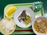 <献立> ごはん 牛乳 鰺のみりん焼き コーン和え 鶏すきやき パイ...