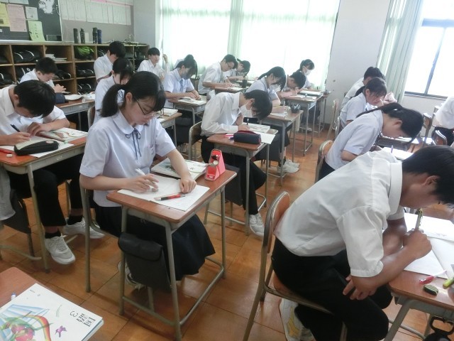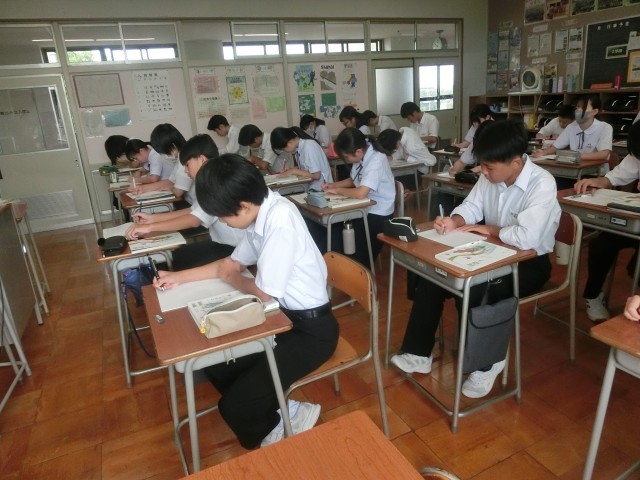 国語 俳句の学習をしています。正岡子規の俳句を読み、情景文を書いています。