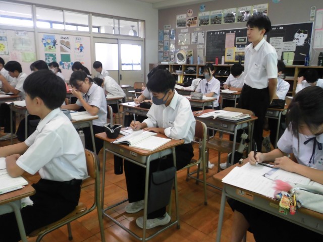 国語 『言葉の釣り糸を垂らす』という随筆を読みました。難しい文でしたが、自分の考えをノートにまとめ、全体での発表もしっかりとしてくれました。
