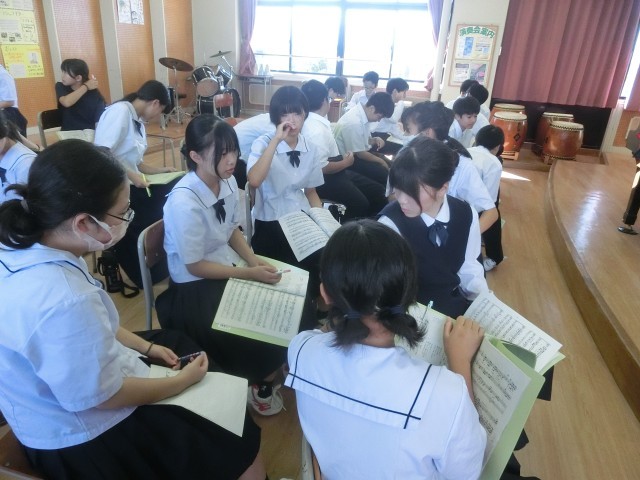 1年生 学習の様子 公開日 2025/10/01 更新日 2025/09/30 1年生 音楽 合唱の練習中です。自分の「推しポイント」を一人ずつ発表しました。好きな歌詞やメロディーを大事に、これから歌っていきましょう。