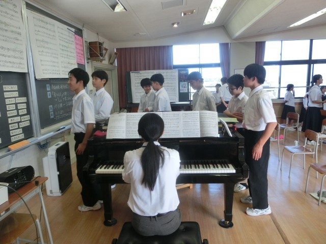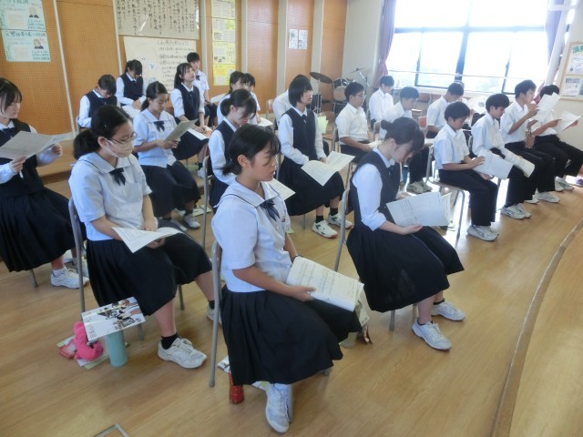 音楽 「赤とんぼ」を聴いて歌ってみた後、合唱コンクール曲を練習しました。
