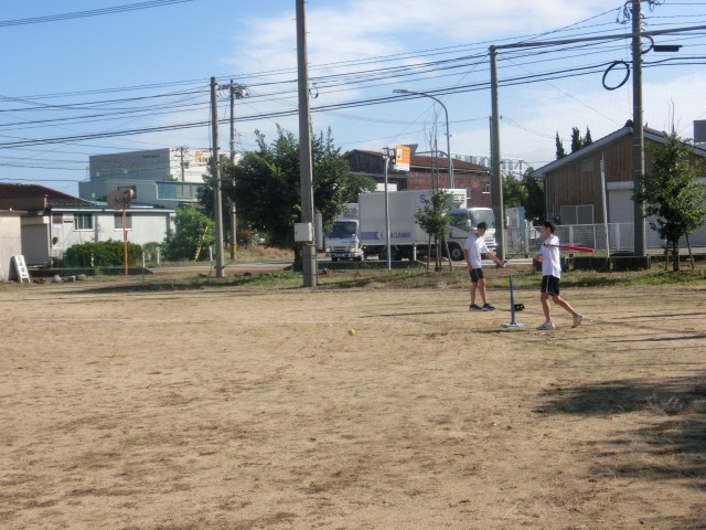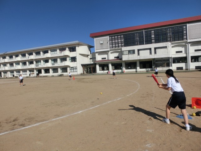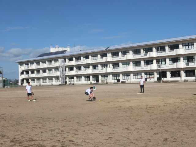 体育 さわやかな秋晴れの下、楽しくソフトボールに取り組んでいます。