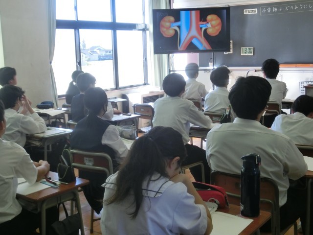 理科 腎臓や肝臓の排出のしくみについて学習しました。