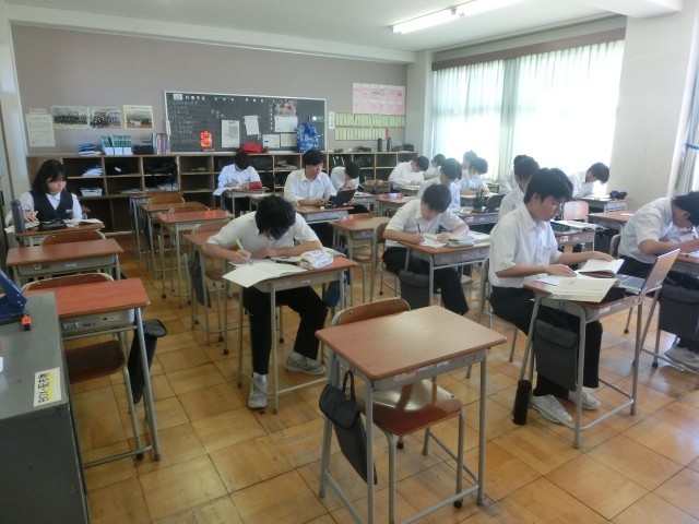 学習の様子 公開日 2025/10/13 更新日 2025/10/10 学校行事 市新人大会の本日、登校している1、2年生は黙々と自習していました。3年生は授業です。上:1年生中:2年生下:技術の授業中の3年生