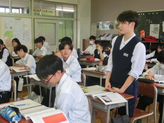 道徳 日本の伝統や文化の継承のために大切にしていきたいことを、書道パフォーマンスの話から考えました。