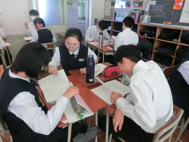 2年生 学習の様子 公開日 2025/10/17 更新日 2025/10/17 2年生 国語 『ヒューマノイド』という小説を読み進めています。人間とロボットの関係をテーマにした物語です。人間らしさをあらわす描写をよく読み取っていました。