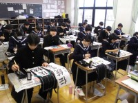 技術 本棚づくりです。のこぎりを使った切断作業に入りました。次回も安全に気をつけて作業しましょう。