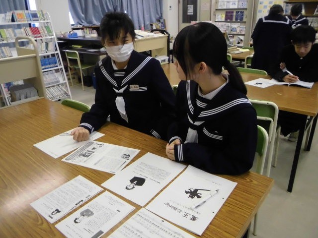 音楽 『魔王』を聴きました。資料を見たり、相談したりしながら、曲の良さを探しました。