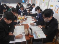 体育 柔道の授業が始まっています。ペアになって技を掛け合い練習しています。
