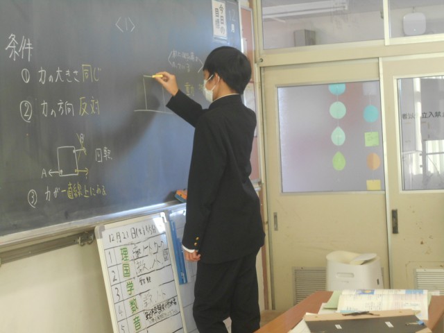 理科 力のつり合いを学習中です。作図に慣れていきましょう。