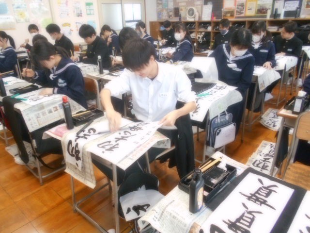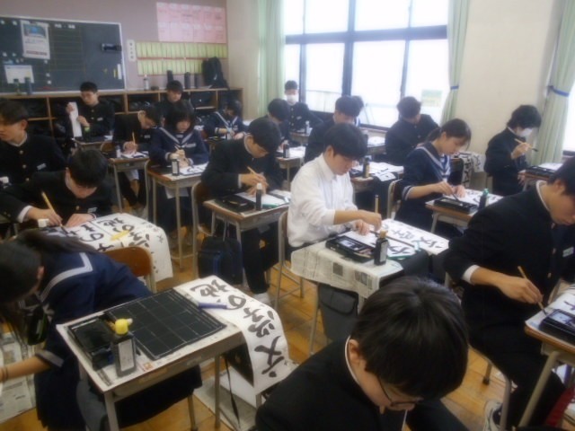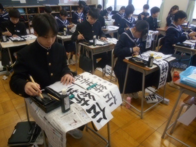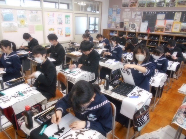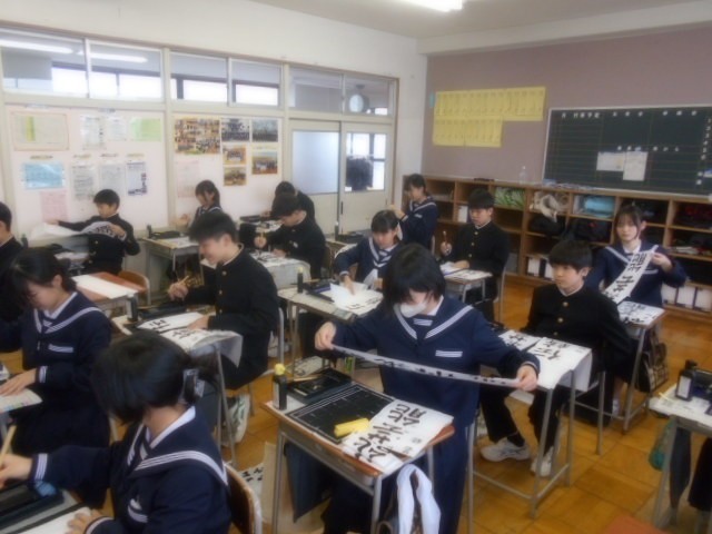 校内書初大会 公開日 2026/01/09 更新日 2026/01/08 学校行事 3学期が始まりました。まずは書初大会で心を落ち着けます。真剣な表情で取り組んでいました。1年生「伝統芸能」2年生「文学の地」3年生「初志貫徹」 +2