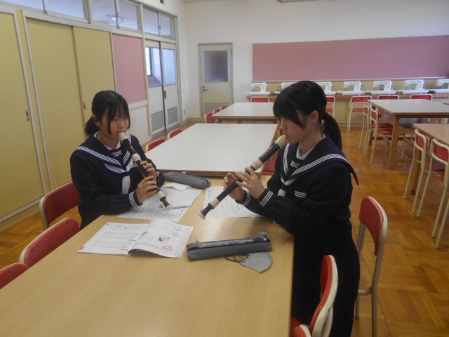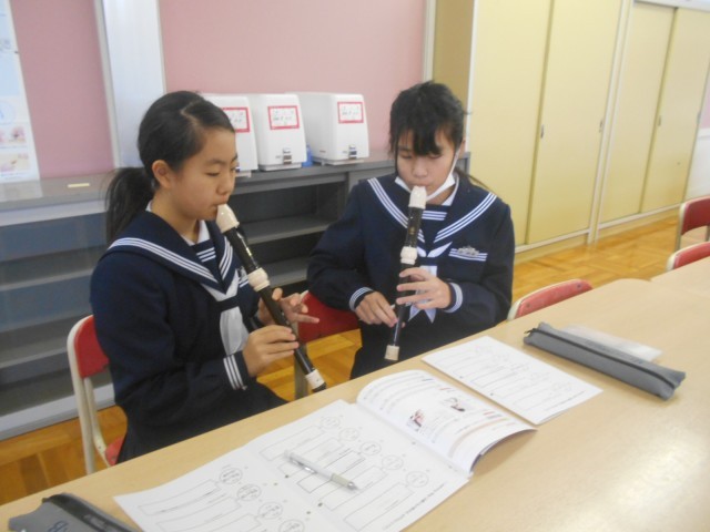 音楽 アルトリコーダーの練習が始まりました。今日は「よろこびの歌」を各自で練習しました。