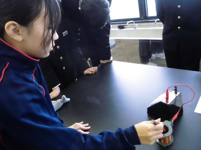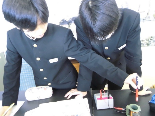 理科 電磁誘導の学習です。発電機のしくみを追求する実験をしました。