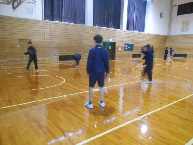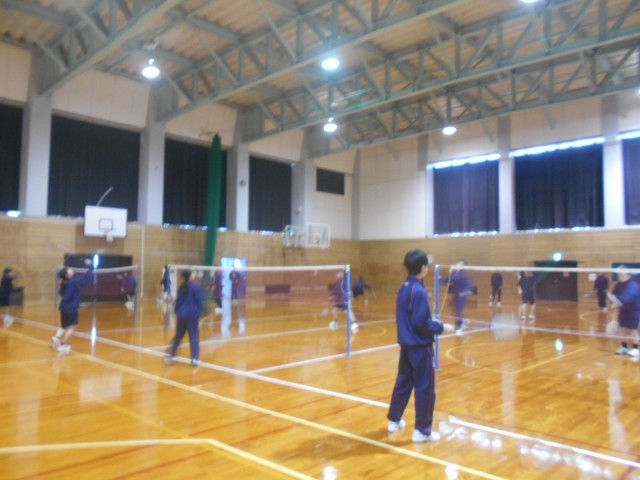 体育 バドミントンの授業です。ラリーが続くようによく動いていました。