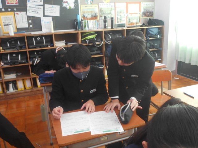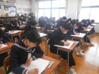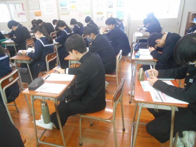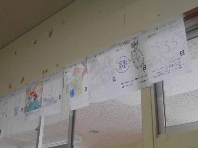 数学 入試に向けて復習プリントに取り組んでいます。教室には卒業までのカウントダウンが貼られています。