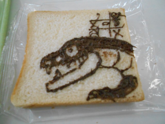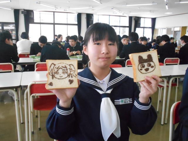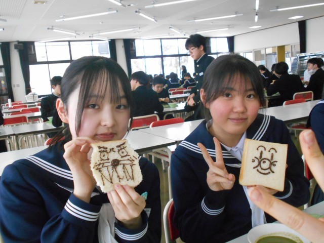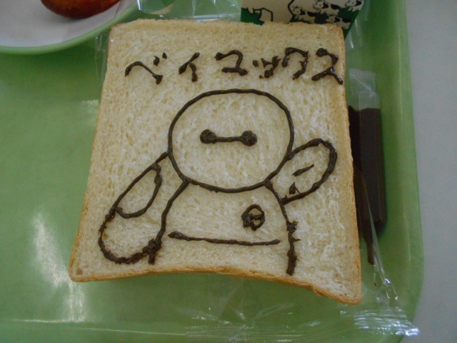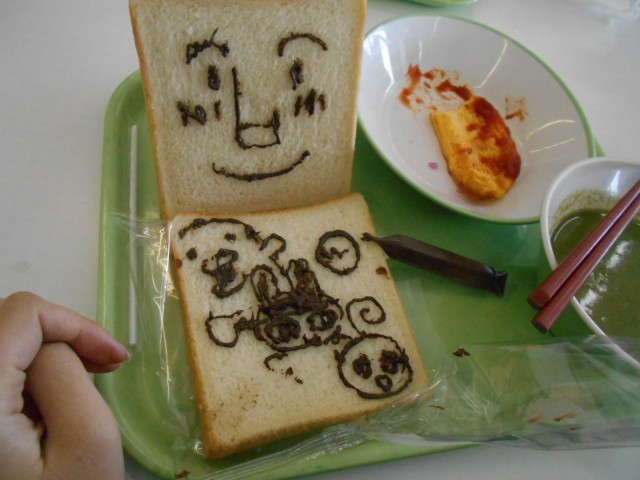 初日は「美術の献立」。チョコペンで食パンに好きな絵を描きました。