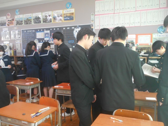 1限数学テストと休み時間の様子です。