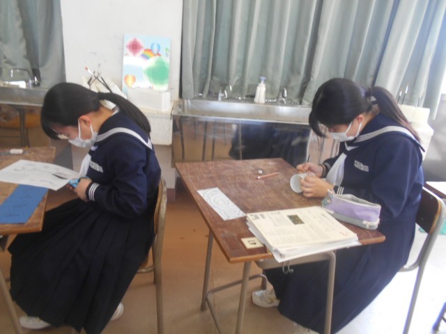 美術 卒業制作として、サンドブラストに挑戦中です。今日はデザインを決めたり、絵や文字を彫り始めたりしました。