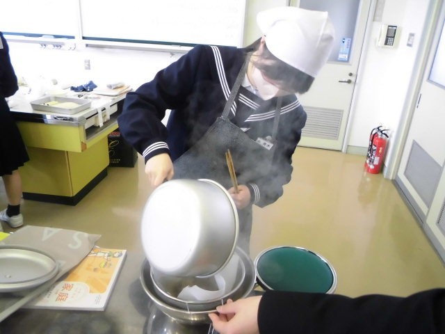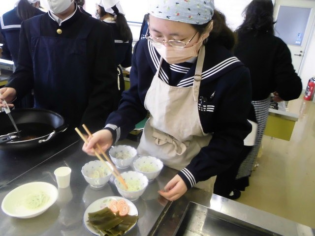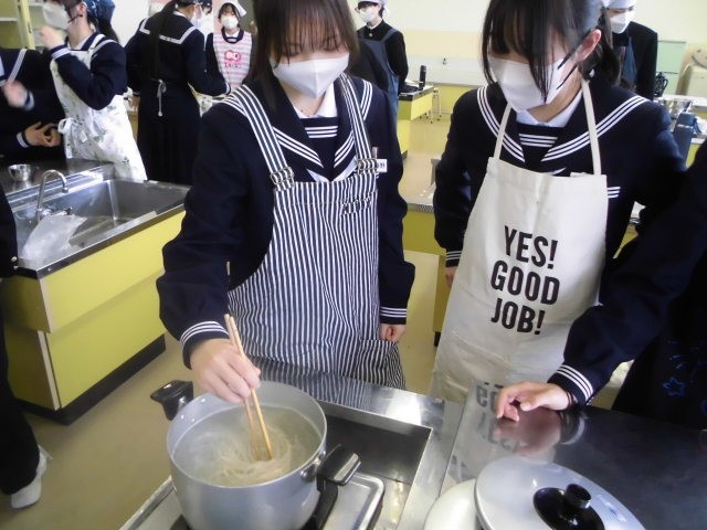 1年生最後の家庭科の授業は調理実習でした。そうめんのすまし汁を作りました。