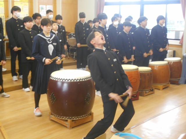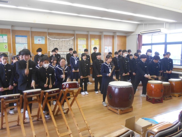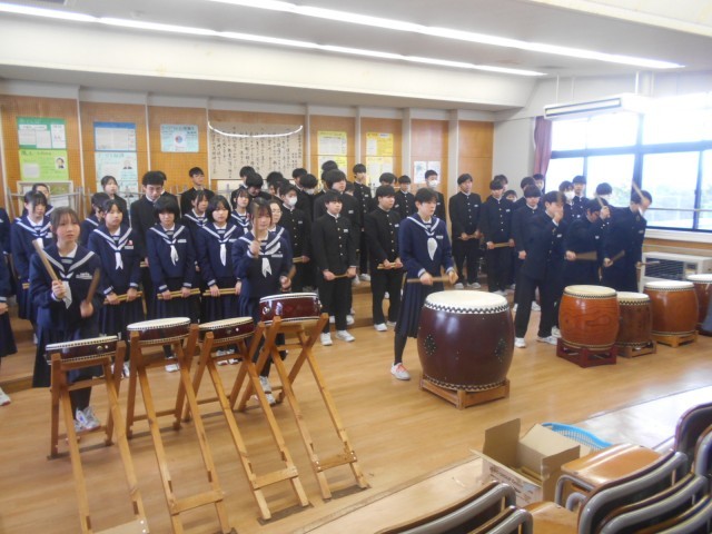 閉校式の前の時間を使って、三成太鼓の練習をしました。
