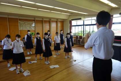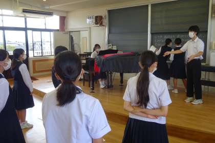 2年 合唱練習 その1 公開日 2021/09/24 更新日 2021/09/24 2年生 9月24日(金) 今日は、学習発表会のステージで発表する合唱を、2クラス合同で行いました。 今年は、「合唱コンクール」ではなく、「合唱発表」として学年ごとに1曲発表する予定です。楽譜を見ずに歌えるようになった人もいました。パートごとに特別教室も活用して練習しました。 (写真上・中:ソプラノ) (写真下:アルト)