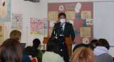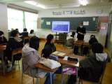学校説明会では、校長から校訓に基づいた目指す生徒像について説明がありました。また、今年度の重点目標「主体的に行動する」ことについて、中学校に入学するまでの6か月間を「気づき・考え・行動する」を意識して過ごしてほしいと話がありました。