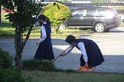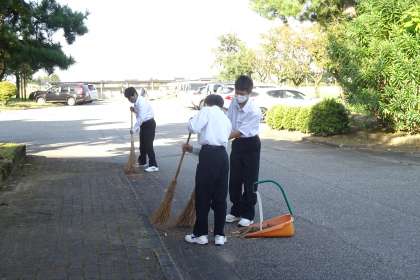 10月5日(火) 生活委員会は毎朝、清掃活動を行っています。少しずつ落ち葉も多くなってきました。