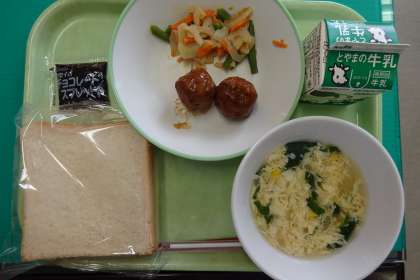 今日は、食パンにチョコレートクリームが付いていたので、おいしく食べられましたね。れんこんソテーもあっさりした味付けで、食べやすかったです。