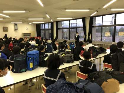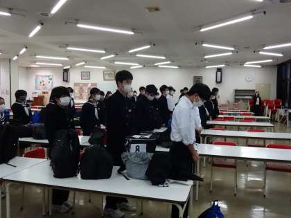 修学旅行 その1 公開日 2021/10/06 更新日 2021/10/06 3年生 10月6日(水) あいにくの雨になりましたが、ランチルームで出発式を行いました。実行委員長の挨拶と教頭先生からお話がありました。 今日から1泊2日の修学旅行に行ってきます。活動の様子をホームページでお知らせしたいと思います。
