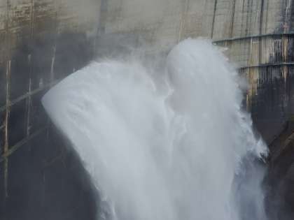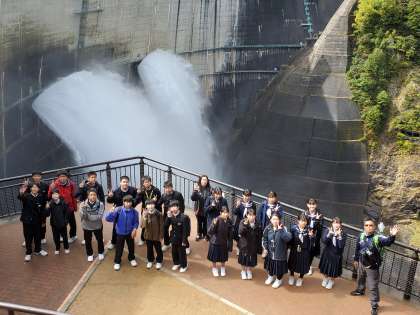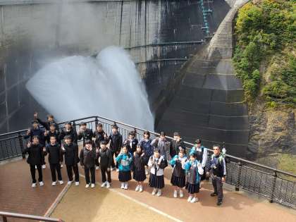 10月6日(水) ダムを背景に写真屋さんに集合写真を撮ってもらいました。大迫力です‼️