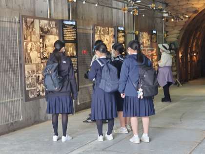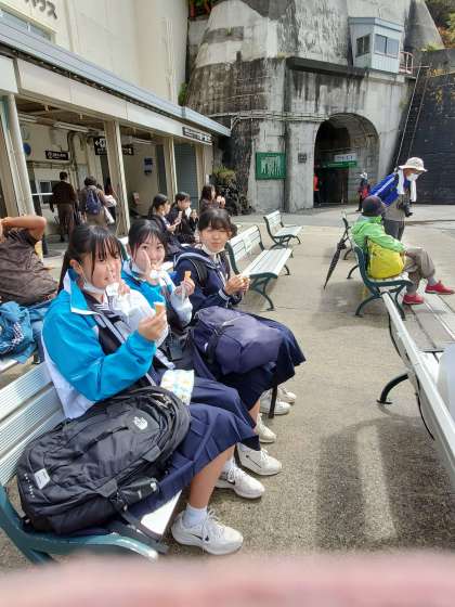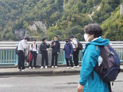 修学旅行 その16 公開日 2021/10/06 更新日 2021/10/06 3年生 10月6日(水) 班毎の自由散策の時間です。黒部ダムの資料を見学している人もいまし、先生にお願いしてソフトクリームを食べている人もいます。