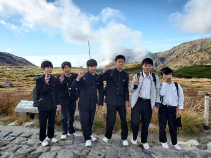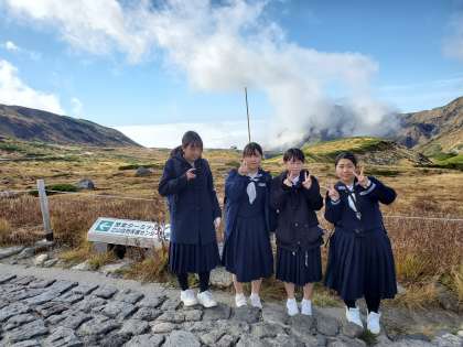 10月6日(水) 写真は、散策の様子です。今日は雲海がみられて本当にラッキーな日です。雲海を背景にハイチーズ✌️