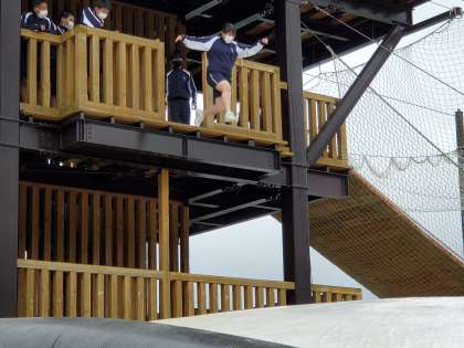 10月7日(木) アクティビティ体験が始まりました。フミダスでは、勇気を出して高いところからジャンプ❗
