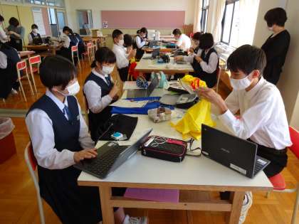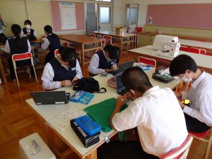 2A 家庭科 その2 公開日 2021/10/07 更新日 2021/10/07 2年生 10月7日(木) 1枚目の写真は、取り付けた飾りボタンとスナップです。まるで市販されている物のような綺麗さですね。 一度取り付けたものの、「より綺麗に仕上げたい!」という気持ちからボタンを取り付け直した生徒もいたそうです。よりよい縫い方を追求する姿勢が素晴らしいです。