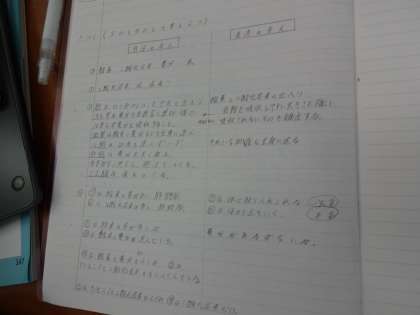 「動物のからだのつくりとはたらき」の学習のまとめとして、各器官のはたらきや物質の移動に着目しながら、生命活動を行うしくみを総合的に捉える学習を行いました。前回の授業でノートにまとめたことをグループで共有しました。自分の考えに加え、グループ学習で聞いた友達の考えもノートに記入しました。