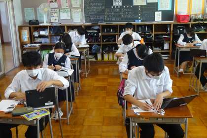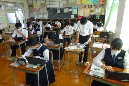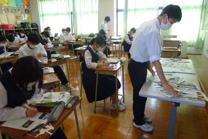 3年生は、修学旅行のまとめとしてレポート(新聞)を作成しています。