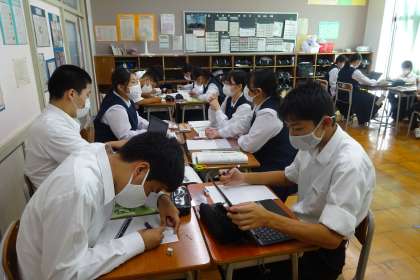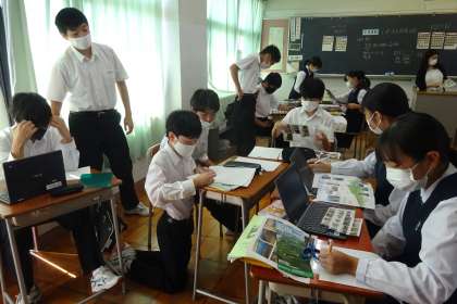 B組はグループになってレポート(新聞)をつくっていました。活動場所にあったパンフレットや資料を積極的に集めて、それを活用している生徒もいました。