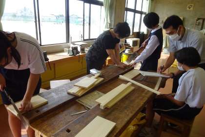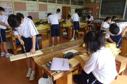 切り落とす最後の最後まで、丁寧にのこぎりを引いていました。先生からアドバイスをもらっている生徒もいました。完成が楽しみですね。