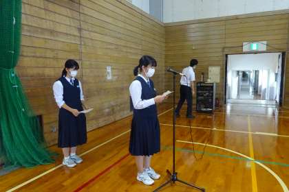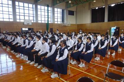 6限、後期生徒会役員選挙を実施しました。選挙管理委員会が進行し(写真上)、立候補者の演説を聞きました。選挙管理委員長からは「立候補者の思いを良く聞きましょう。立候補者は、公約と今の気持ちを演説で述べてください。」と挨拶がありました。(写真中)