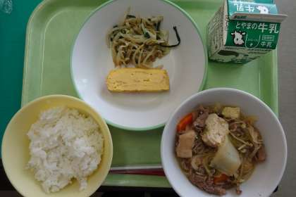 今日は予想最高気温が32度と高く、お昼が近付くにつれ蒸し暑くなってきましたが、午後は北から涼しい風が吹き、やはり秋だなと感じました。涼しくなると、おでんやすき焼きがおいしく感じられます。今日のおかずのすき焼きは、お肉も柔らかく、とてもおいしかったです。甘い厚焼き卵と、とても相性がよいと思いました。